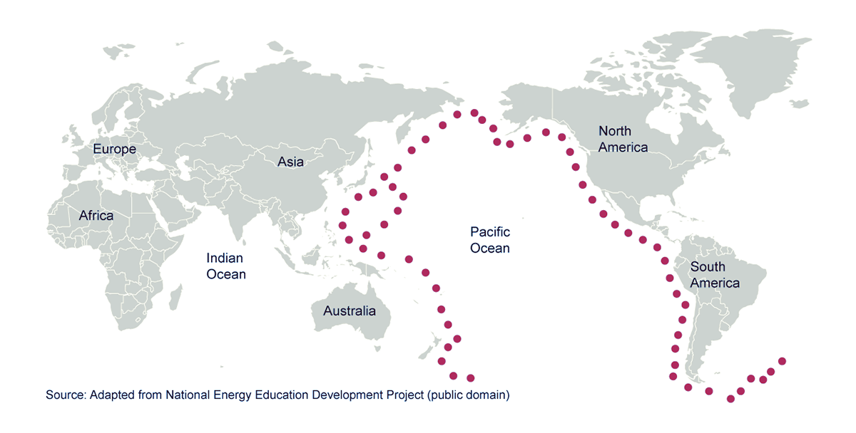 Geothermal energy can typically only be produced in certain geographical hot spots. The most active geothermal zones are predominantly found along tectonic plate boundaries—the Circum-Pacific Belt, also known as the “Ring of Fire”. This horseshoe shaped region is home to 75% of the Earth’s volcanoes. Although geothermal energy never runs out, these geographical limitations make it less viable for wide-scale energy production. Fortunately for Western Canada, geography and geology are on our side.