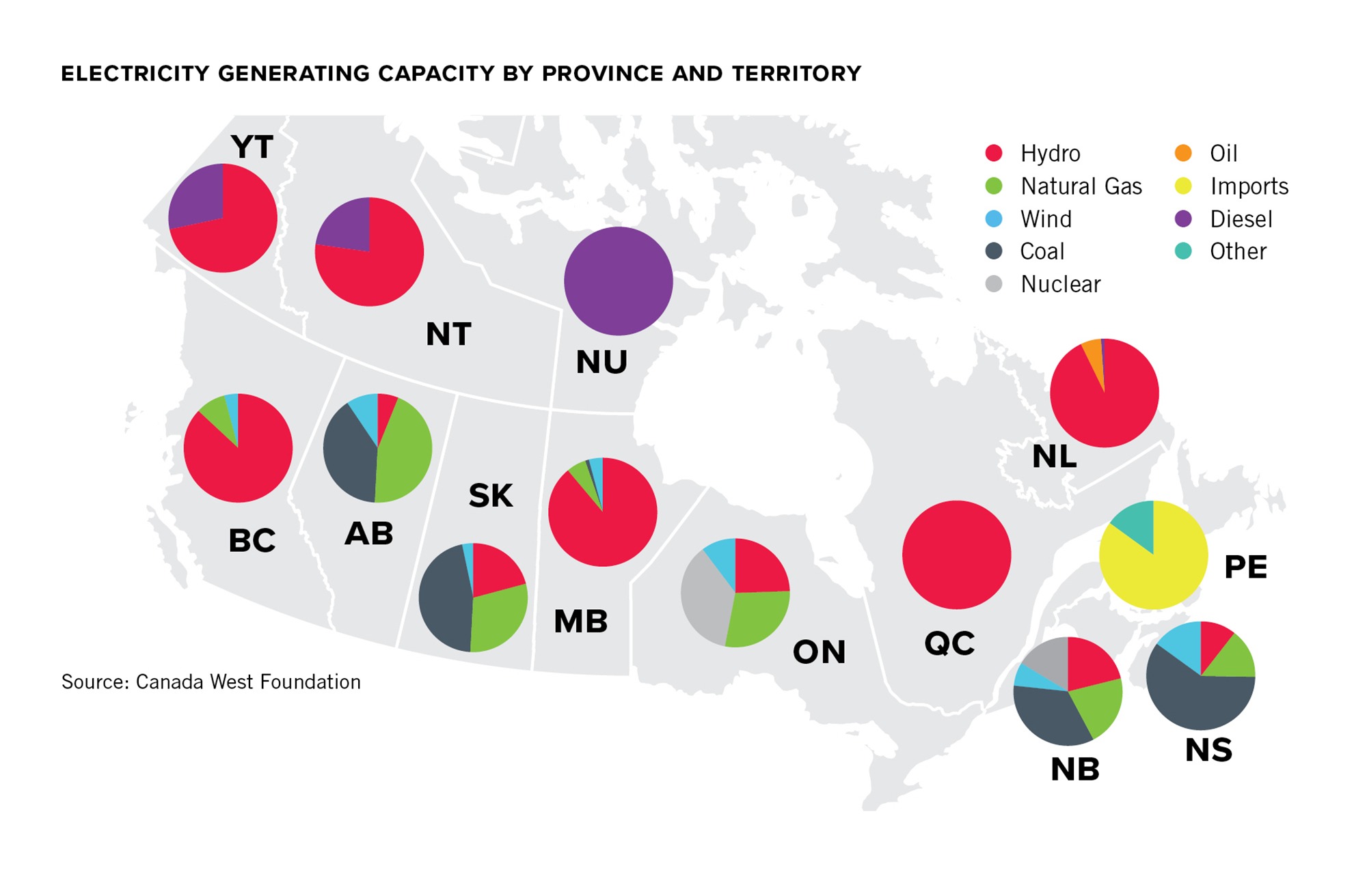 Canada’s natural resources are abundant, but unevenly distributed across the provinces. With electricity resources, some provinces have significant hydroelectric resources, while others rely on carbon intensive sources like coal which are being phased out yet have significant solar and/or wind potential. Inter-provincial cooperation can help fully capitalize on these resources.