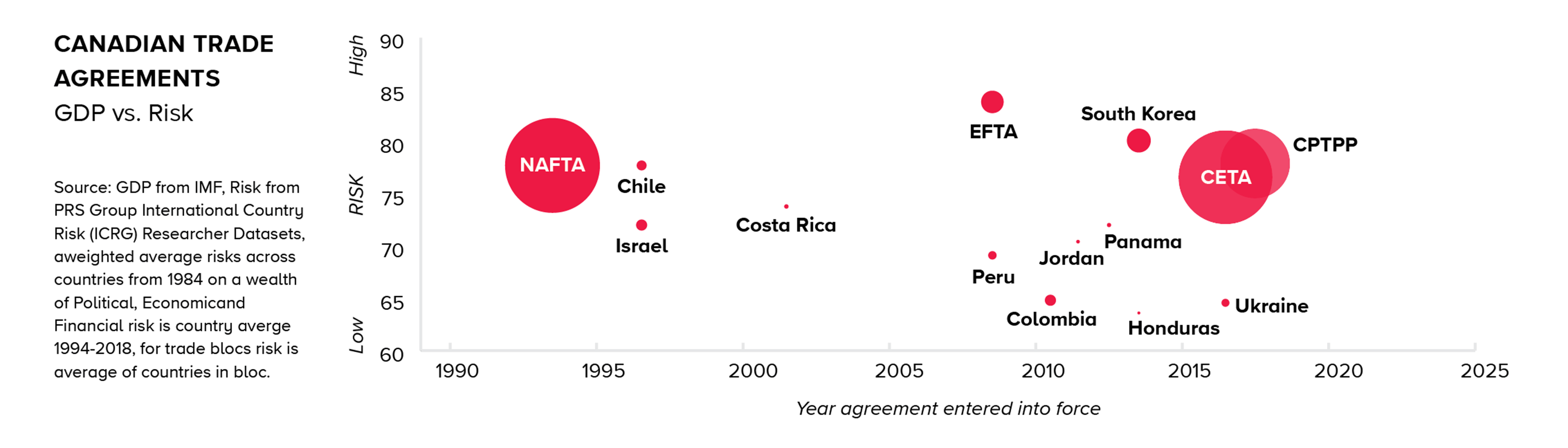 Canada’s trade focus in the past two decades had been on agreements with mostly distant, small, less wealthy and difficult markets. For smaller exporters, these markets framed the diversification question as – why leave the ease, safety and certainty of the U.S. market for twice the work, half the money and double the risk in a country like Honduras? Canada’s new trade agreements – and recent troubling U.S. trade behaviour – have completely flipped that script. Larger markets with more opportunities in safer countries, coupled with the U.S. being less of a slam dunk, have finally given smaller exporters impetus to look further afield.