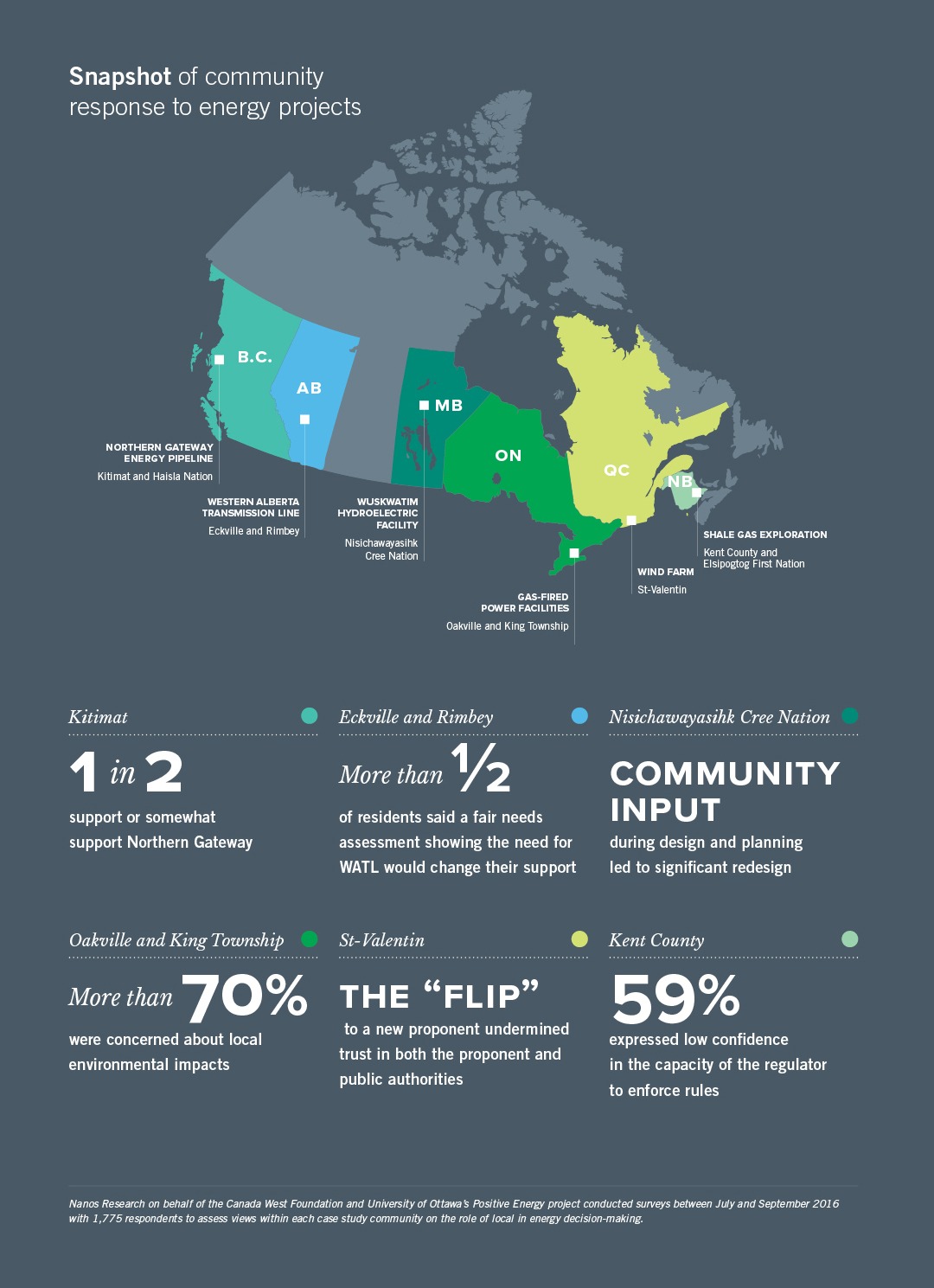 While many commentators continue to assume that concerns about climate change drive local opposition, our research shows that this is not the case. Other factors have emerged as being far more important, including: safety, need, distribution of benefits, local environmental impacts (e.g., water contamination), restrictive consultation/communication practices, and local involvement in decision-making. From shale gas exploration on the East Coast to wind farms in central Canada to a proposed pipeline terminus on the West Coast, local authorities and communities are demanding an increasing role in how economic and environmental decisions by third parties affect their future. One thing seems very clear: The world of elite, centralized decision-making without local engagement is fast becoming a thing of the past.