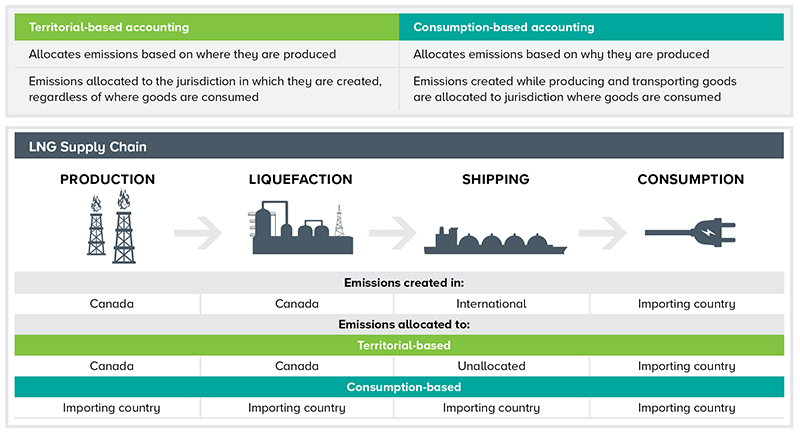 Consumption-based emission accounting is an alternative to territorial-based emission accounting. It allocates emissions associated with the processes for producing and transporting goods and services to the jurisdiction where those goods and services are consumed. Under a consumption-based approach, the dilemma faced by Canadian LNG production is reduced because a consumption-based approach does not reward emission leakage. There is no incentive to shift production to less stringent jurisdictions – but there is every incentive to reduce the carbon-intensity of domestic consumption regardless of where those goods and services originate.