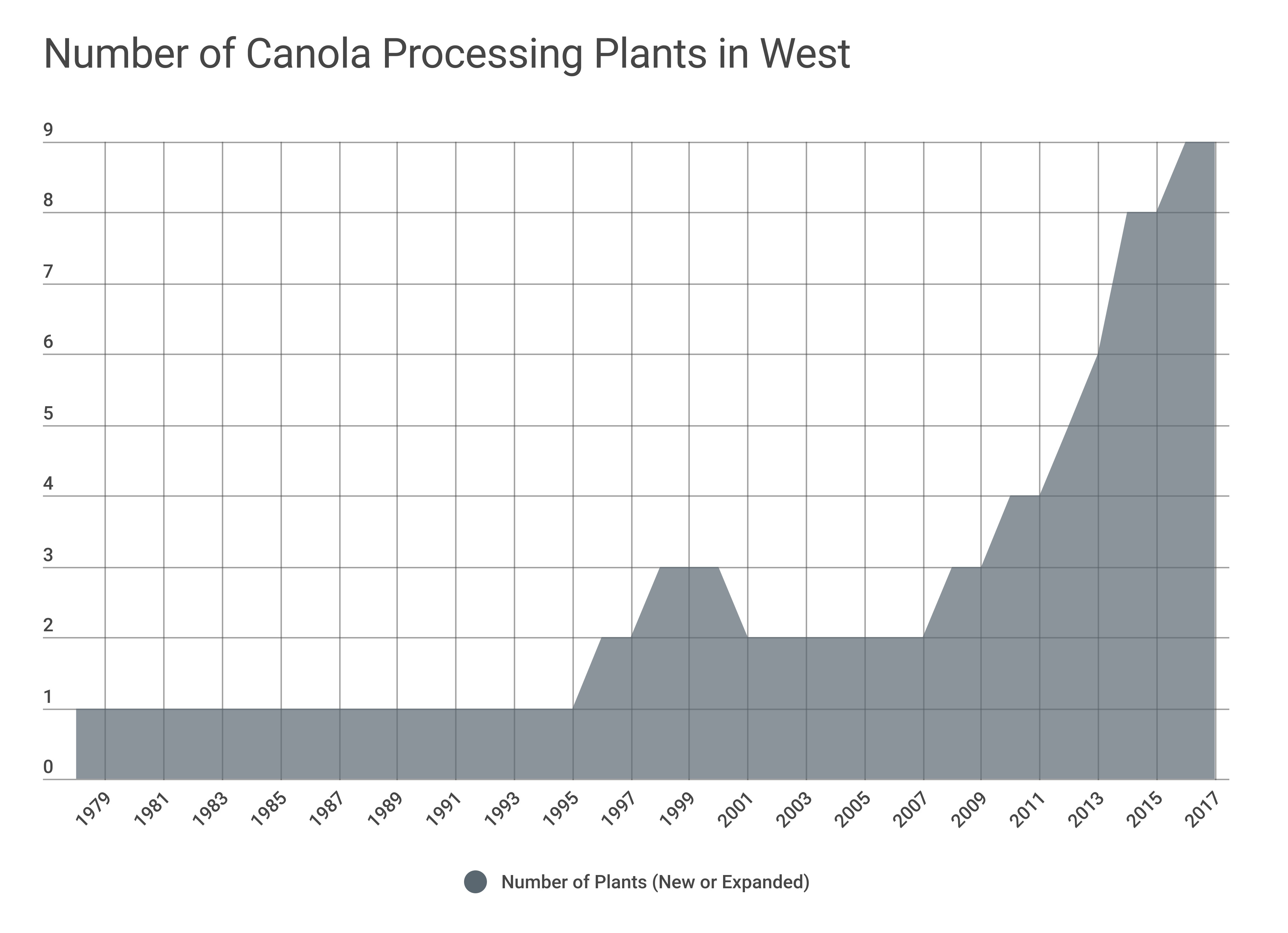 Between 1978 and 1996, when the region’s second canola processing plant opened, in Clavet, Sask., canola production grew to 220 million tonnes from 151 million tonnes, an increase of 42.3% in 18 years. In the next two decades, 11 additional plants were opened, and canola production grew an astounding 292%. There is a strong correlation between the massive growth of canola production and the increasing number of canola processing plants in the Prairies. In other words, the strength of the canola industry was driven by the creation of processing plants.