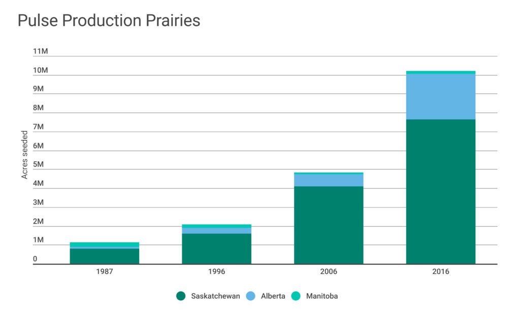 The western pulse industry is now poised for the same success as canola. In the last four decades, the area seeded with pulses in the prairies has grown more than ten times in size. Additionally, there is a strong research and marketing base established across the three prairie provinces for pulse products.