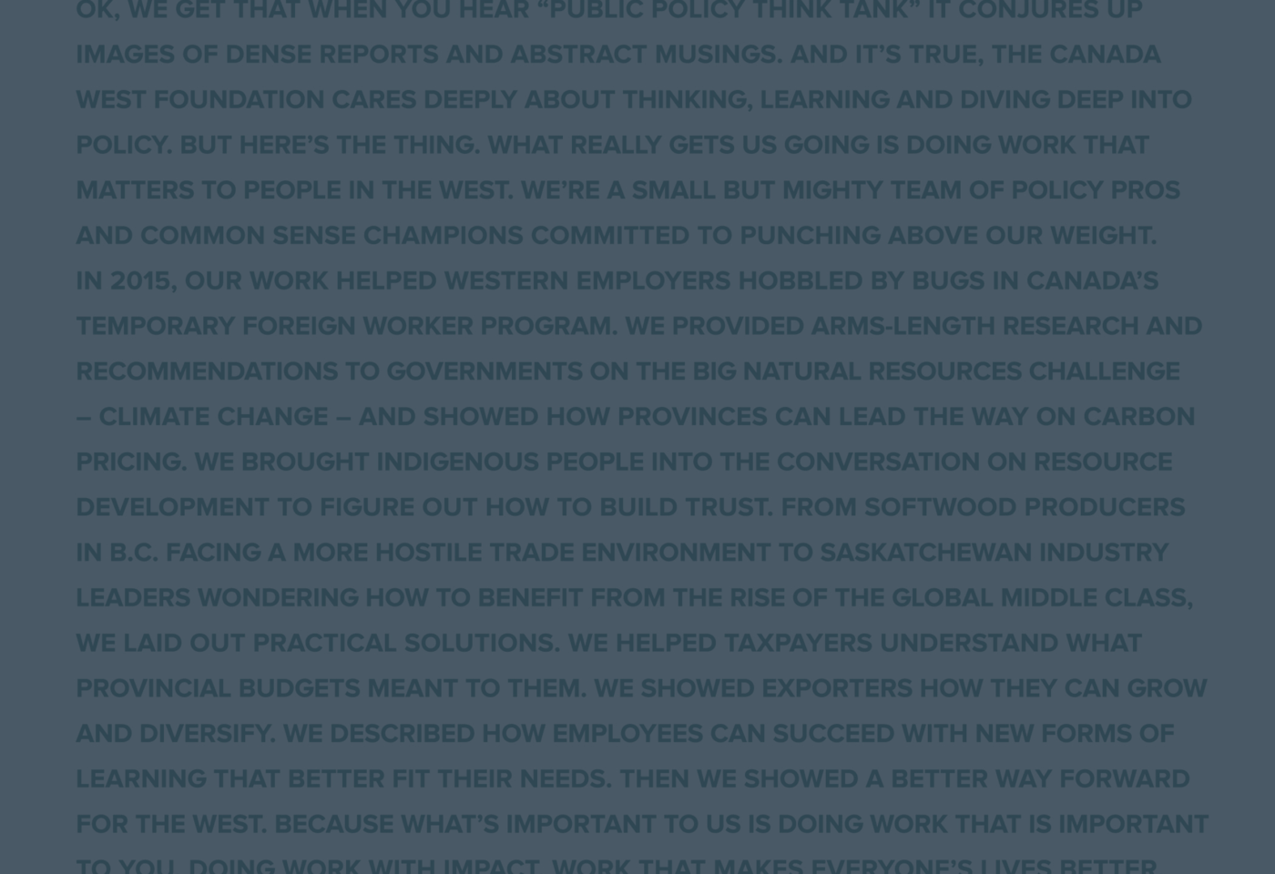 The Canada West Foundation is the only public policy think tank that focuses on issues that matter to the West.
