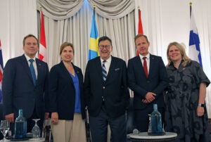 Pictured above, from left to right: H.E. Hlynur Guðjónsson, Ambassador of Iceland to Canada; H.E. Signe Burgstaller, Ambassador of Sweden to Canada; Gary G. Mar, President & CEO, Canada West Foundation; H.E. Nikolaj Harris, Ambassador of Denmark to Canada; H.E. Hanna-Leena Korteniemi, Ambassador of Finland to Canada.