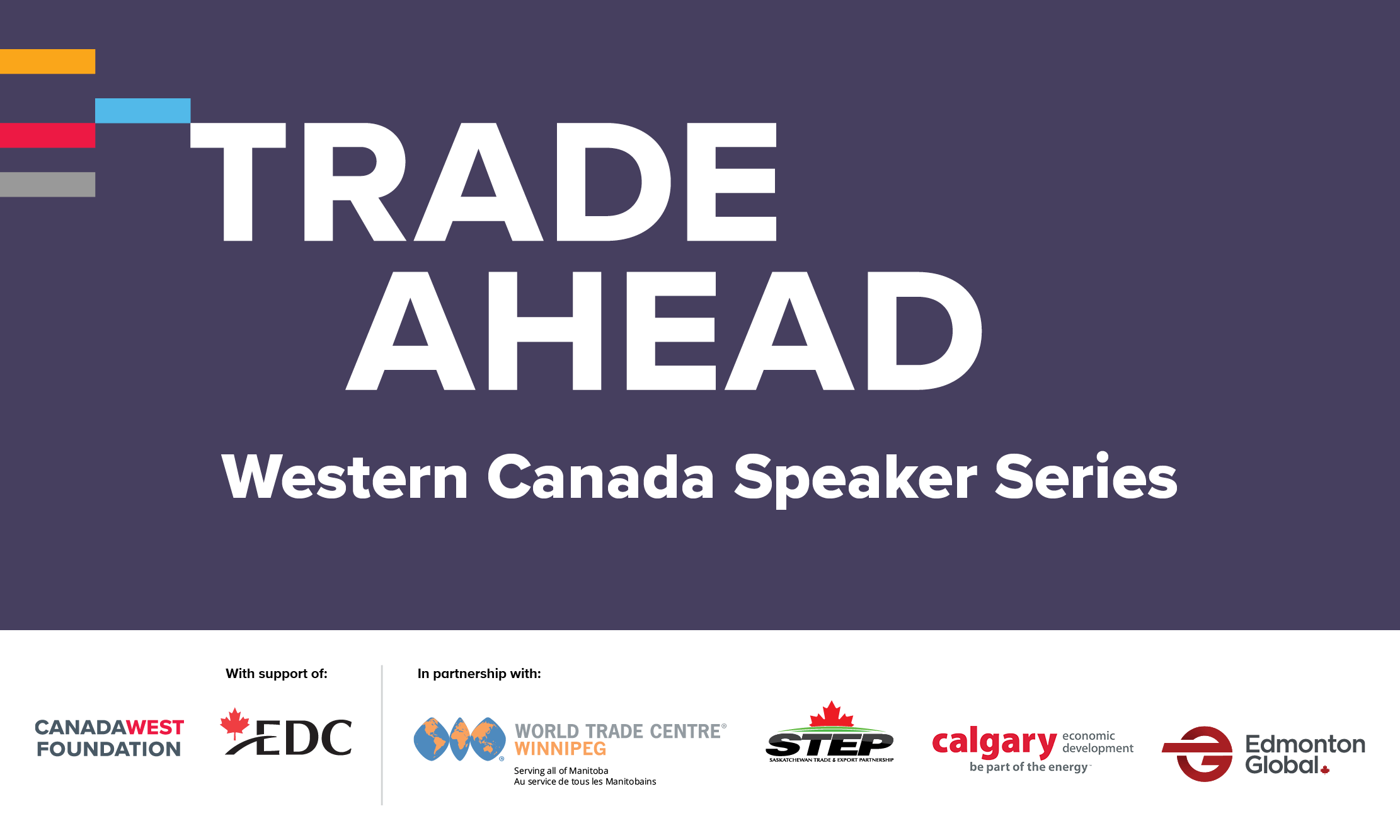 Join us for an enlightening series of talks featuring key insiders outlining the major macro changes they expect to see in the year ahead, and burrowing down to what these changes could mean for the West, prompted by questions from provincial co-moderators. This series is being presented by the Canada West Foundation with the support of Export Development Canada and in partnership with Calgary Economic Development, Saskatchewan Trade and Export Partnership, World Trade Centre Winnipeg and Edmonton Global.